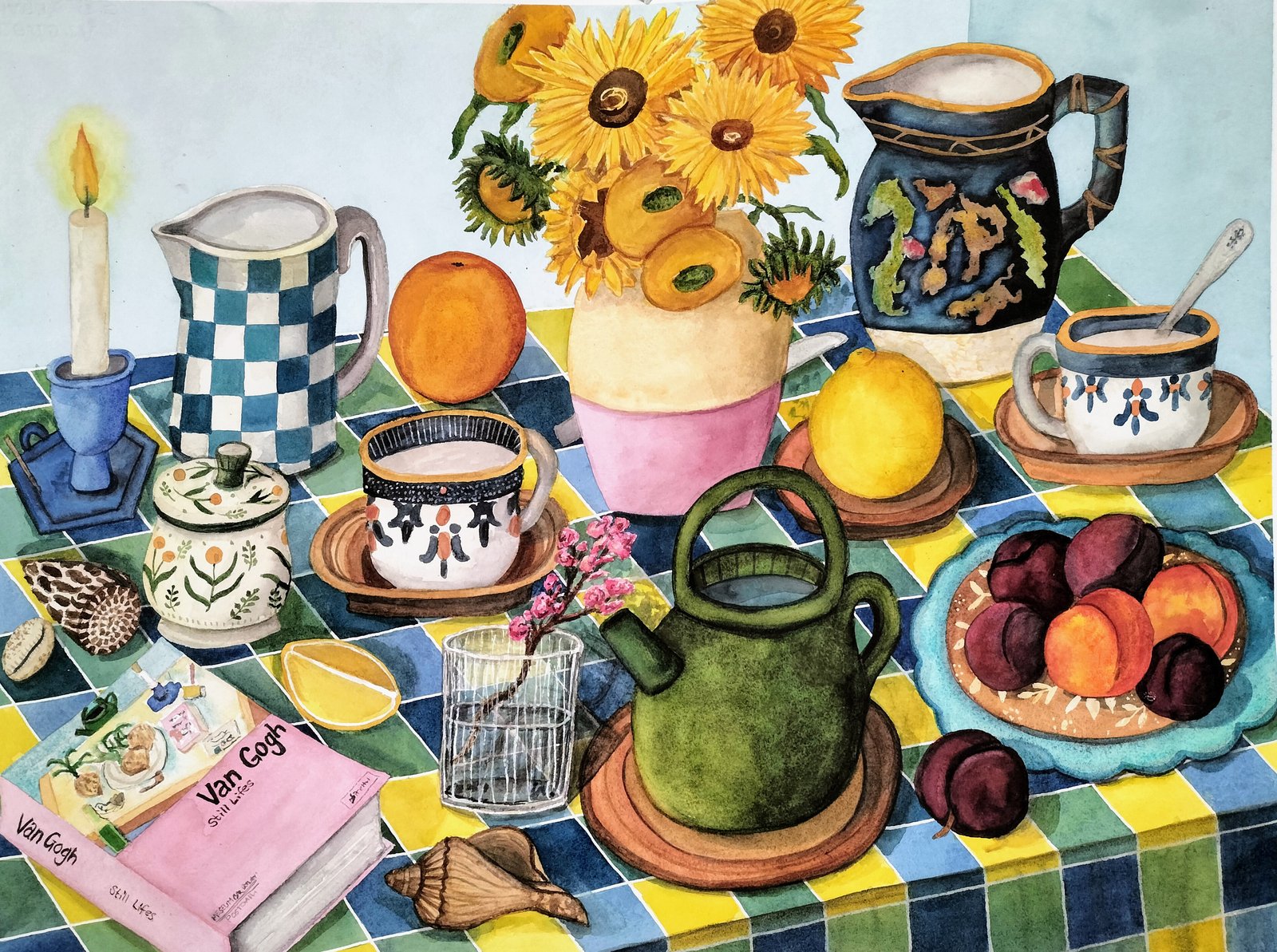 High tea over harbour views. 56x76cm. Original watercolour.